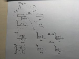 这里解释一个问题,我们为什么要在频域上放数据,而不是在时域上直接放。首先,我们希望我们的数据占用的是一段频带,这样不同用户通过滤波器可以提出自己想要的数据。其次,低频的干扰比较多,我们需要将数据搬移到高频去,避开低频的干扰。
